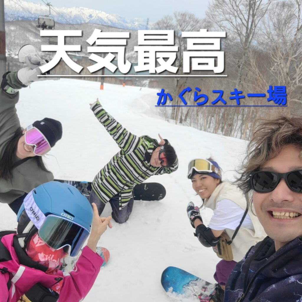 🌴春スノボ2024✨ラナイはシーズンラストで4月11日の木曜日にメンバーで新潟県はかぐら、へぎそばの美味しいところでスキーとスノボ🏂️を楽しんで参りました。とってもお天気良く、風も無く、抜群の雪山日和🏔️雪もそこそこ残っておりましたが、気温上昇でパウダースノーとはいかなかったです。
