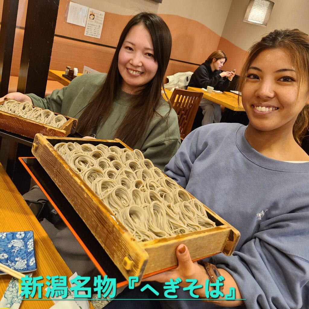 🏂️みんなそこそこ滑れるレベルなので滑走に滑走を重ね、全身筋肉痛。帰りの温泉でめっちゃ癒されました♨️夕食は名物のへぎそば。がっきーの髪色と天パーがまさにへぎそばで、越後湯沢の新ゆるきゃら『へぎそばくん』を就任することとなりました(笑)